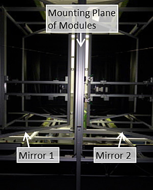 Figure 4: Picture of two-mirror setup for the measurement of full-size bifacial modules [26].