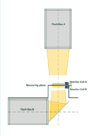 The company h.a.l.m. provides setups with two light sources for measuring large-area bifacial solar cells with both-sided flash illumination (see Figure 2) [14]. The light sources can be operated either independently or in synchronized mode.