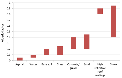 Figure 3: Albedo factors for various ground surfaces [Helmholtz]