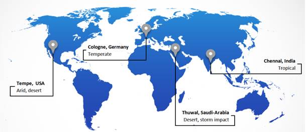 Figure 8: Locations of TÜV Rheinland for energy yield measurement of PV modules