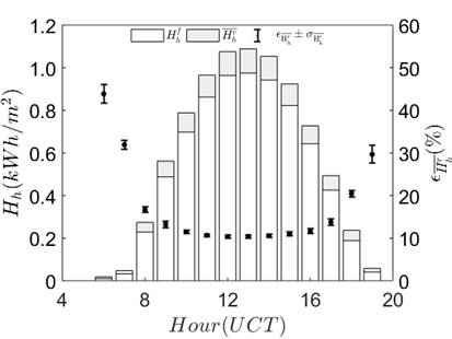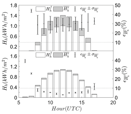reporting per hour or day respectively. Figure 14 depicts in stacked columns the hourly front solar irradiation