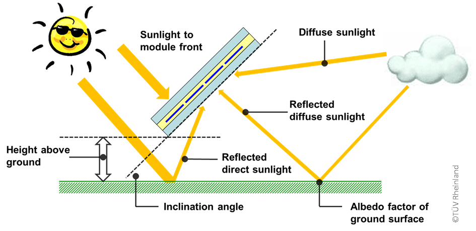 Irradiance received by the module rear side: As illustrated in Figure 2, there are complex relationships for understanding the rear irradiance (Installation conditions, shading effects). The various parameters and components are discussed in the next chapter.