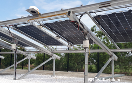 Bifacial modules shall be installed in portrait orientation and in a single row. The height of all bifacial modules in the energy yield comparison test shall be the same. The minimum distance of the lower frame to the ground shall be larger than 1.3 m.
